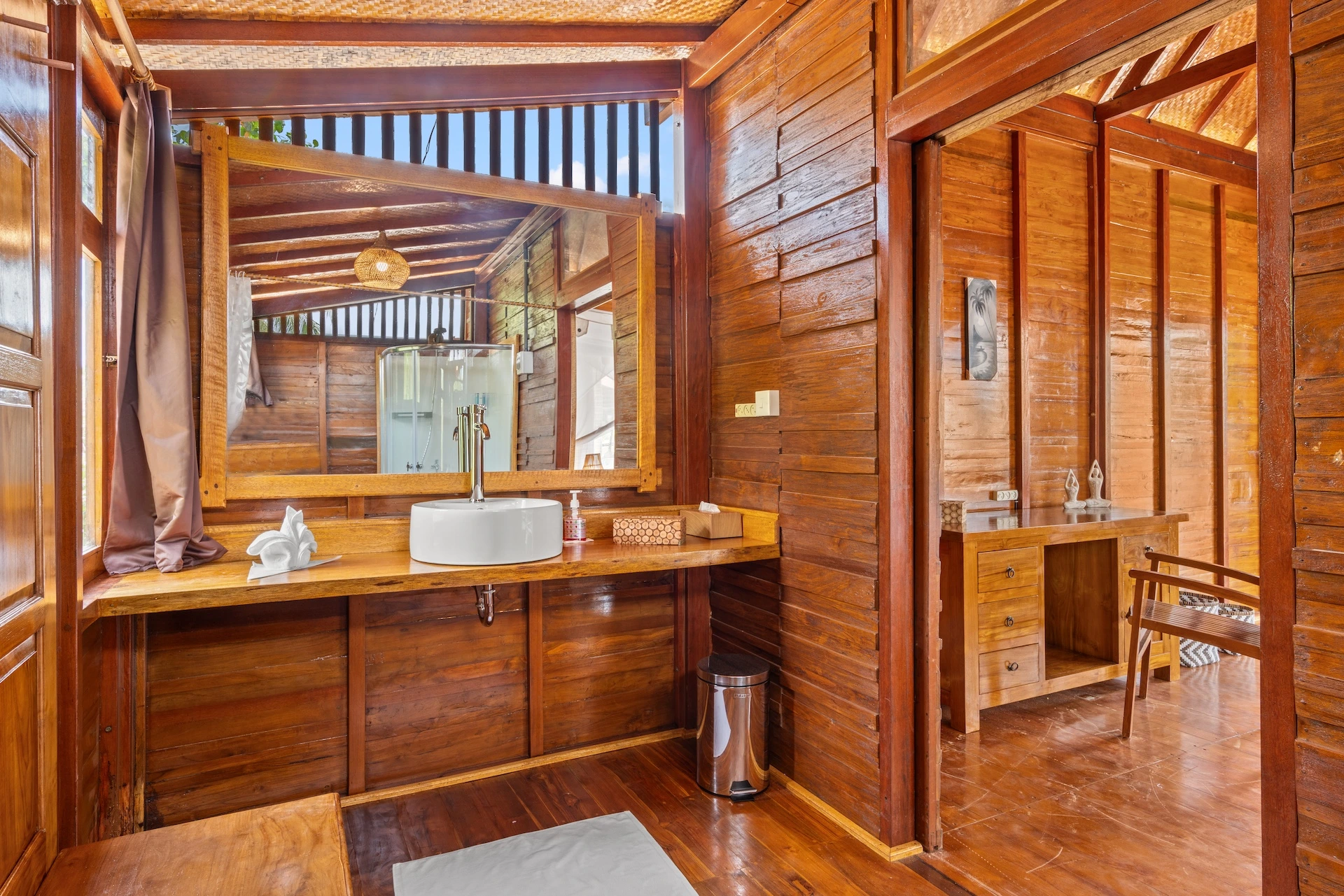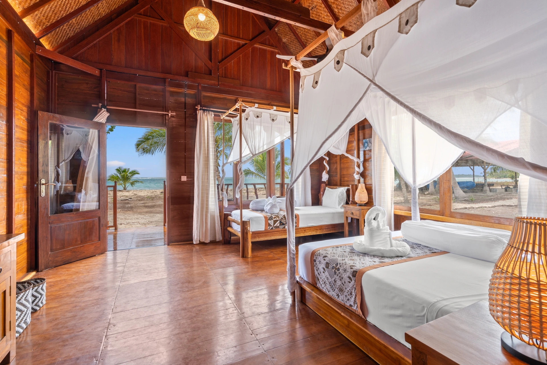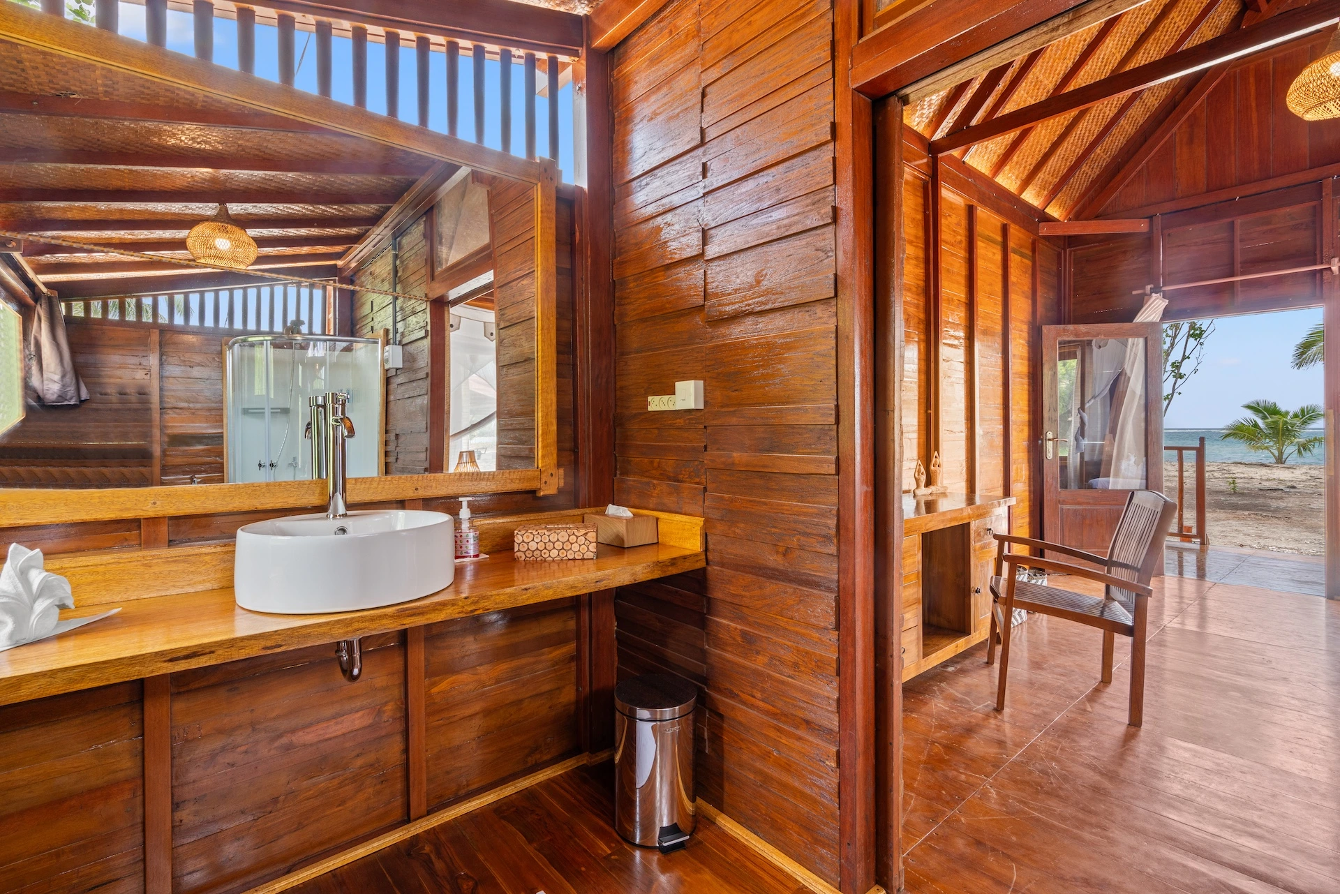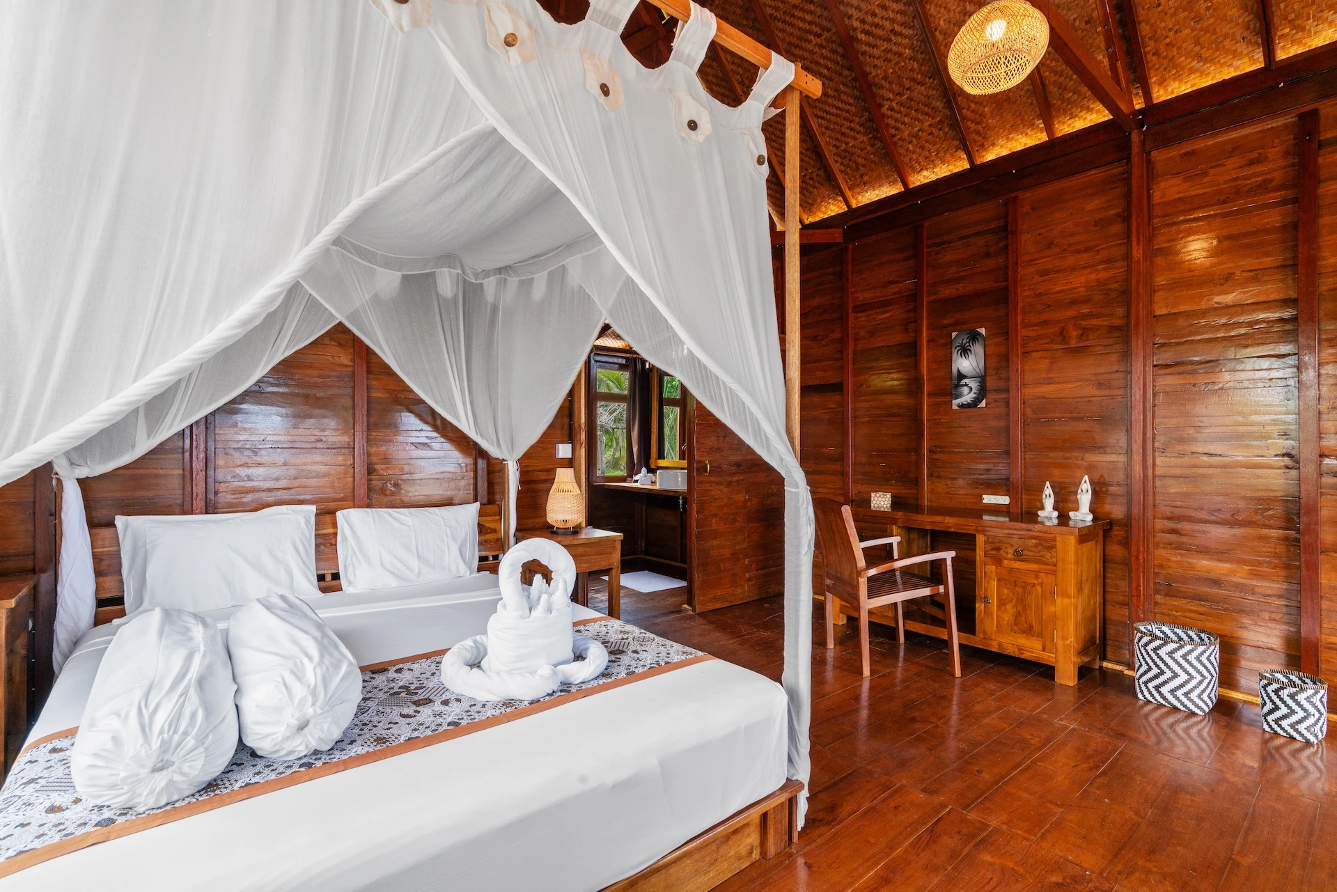 Whether you’re looking for larger suites or a more budget-friendly private single suite, we offer a variety of configurations to suit your needs. Each room is designed with privacy and comfort in mind, ensuring an unforgettable stay. The décor blends Indonesian craftsmanship with the comfort of modern Western amenities.